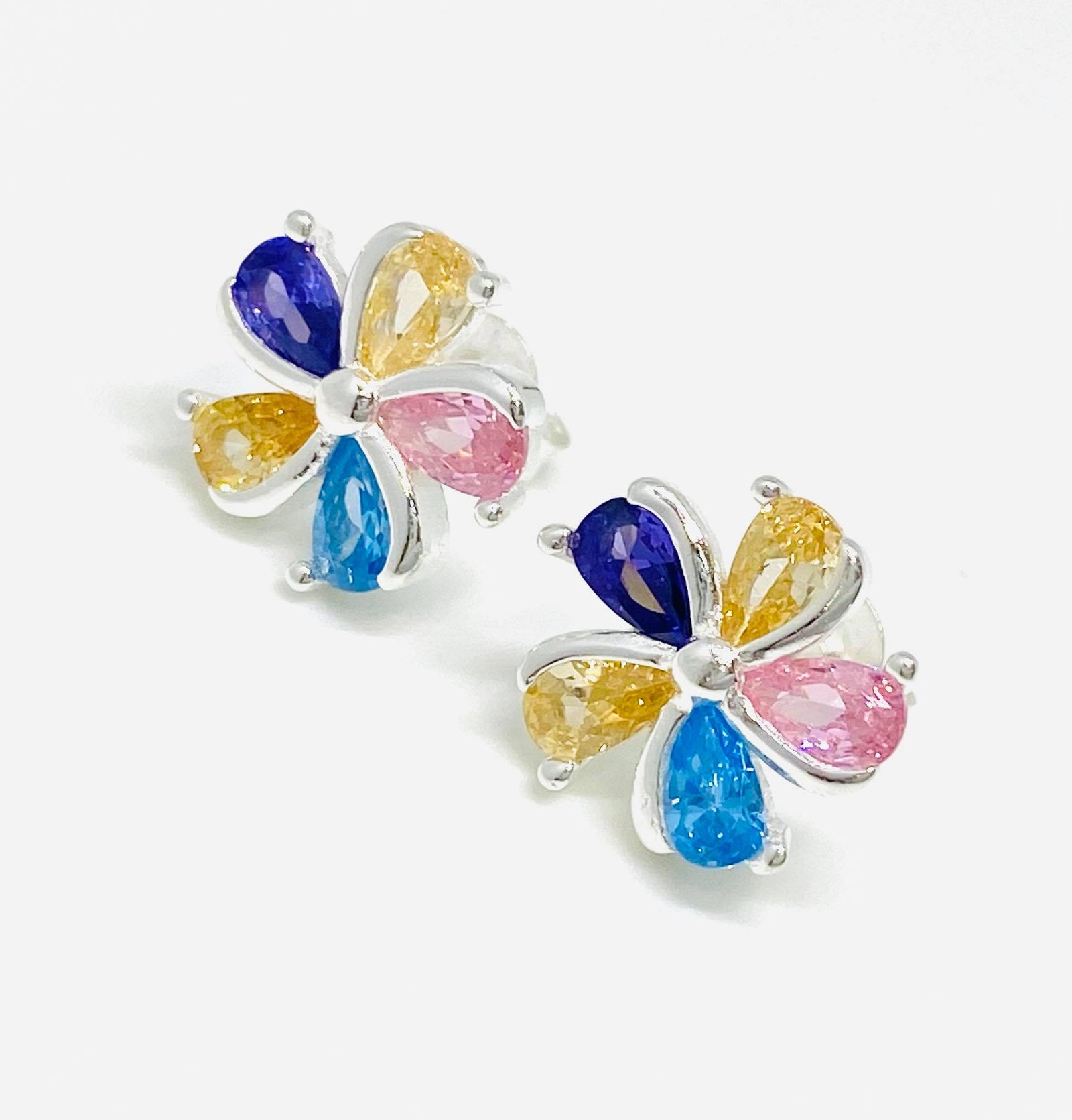 Aros flor con Piedras Multicolor de Plata 925