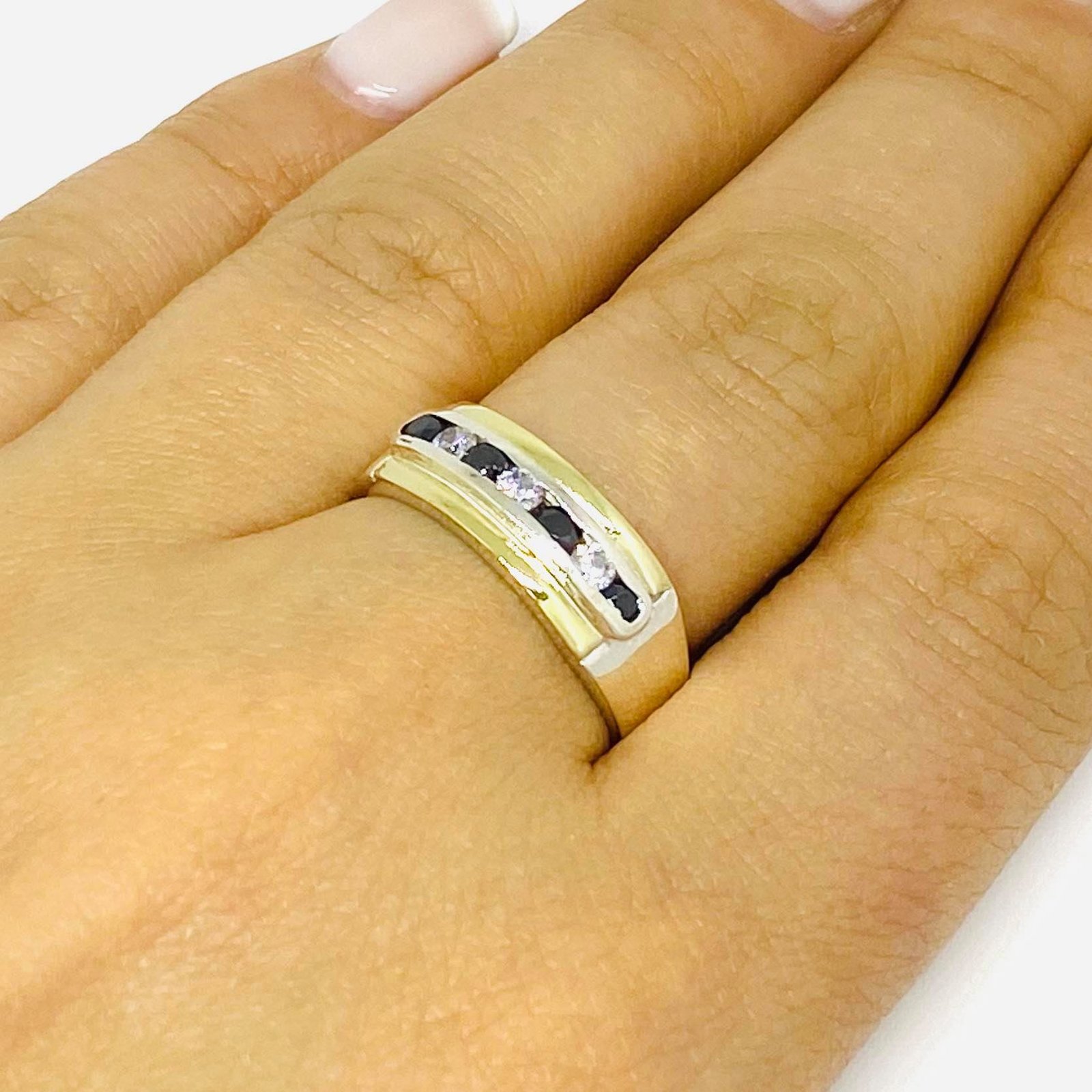 Anillo Medio SinFin Combinado Blanco-Negro de Plata y Oro