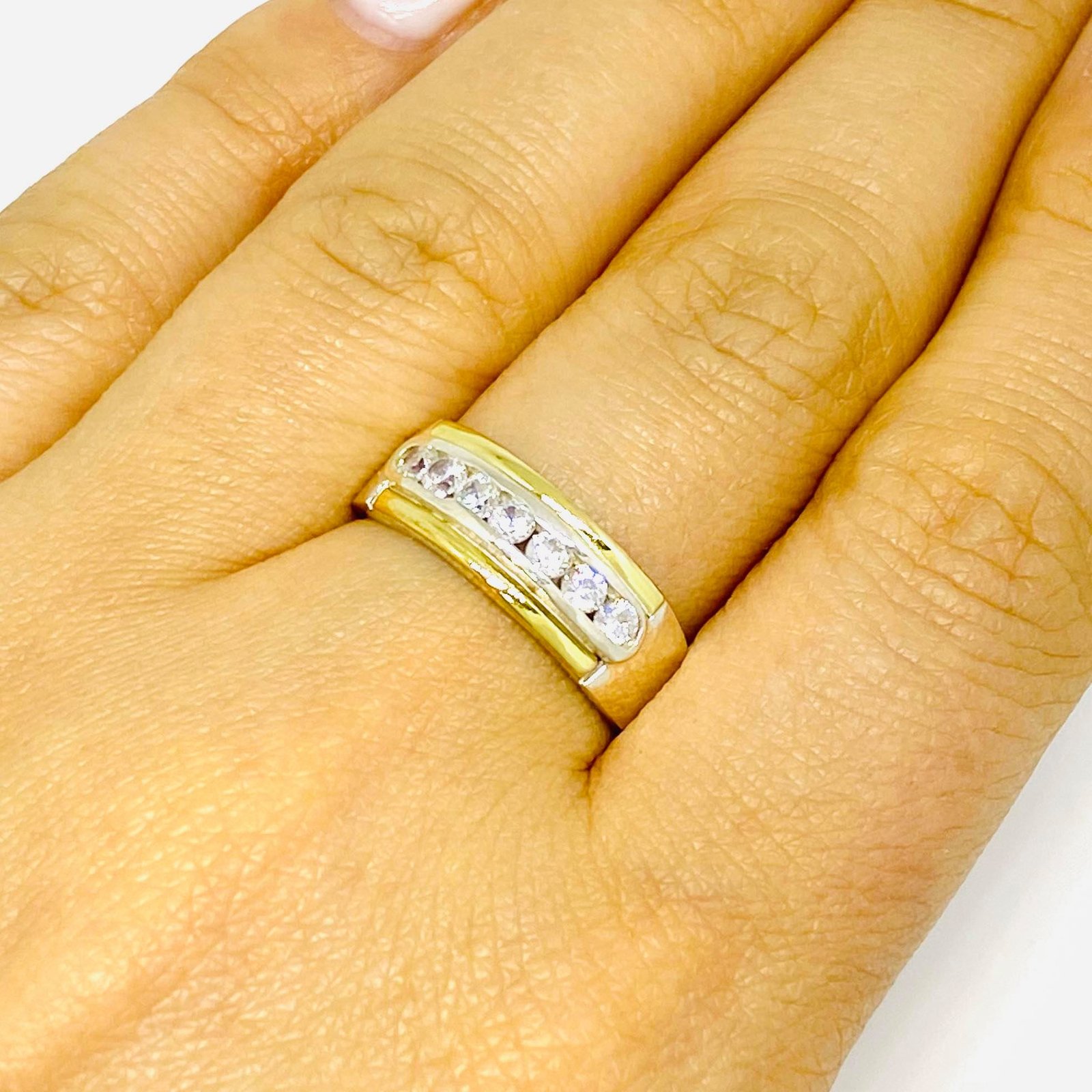 Anillo Medio SinFin con piedras Blancas de Plata y Oro