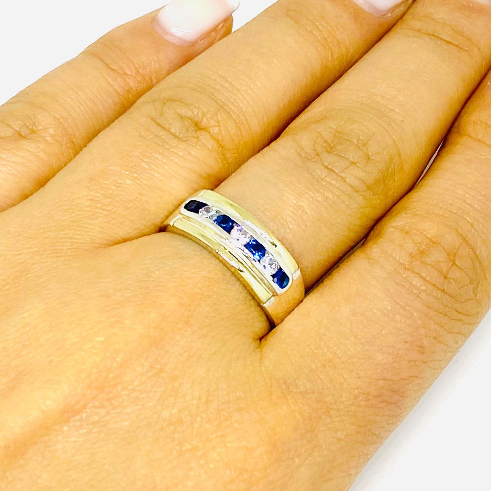 Anillo Medio SinFin Combinado Blanco-Zafiro de Plata y Oro
