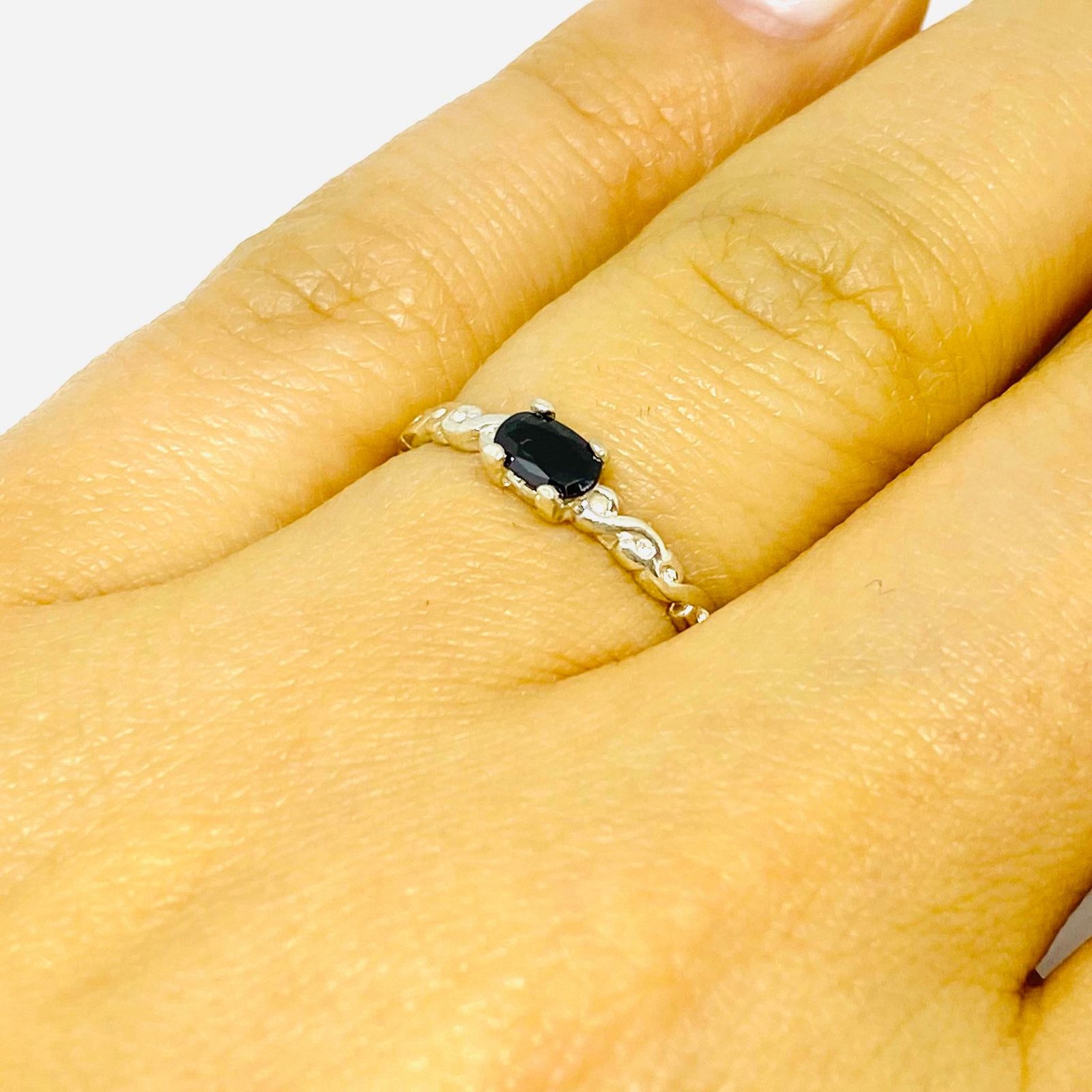 Anillo Fino de Compromiso con cubic Ovalado negro Plata 925