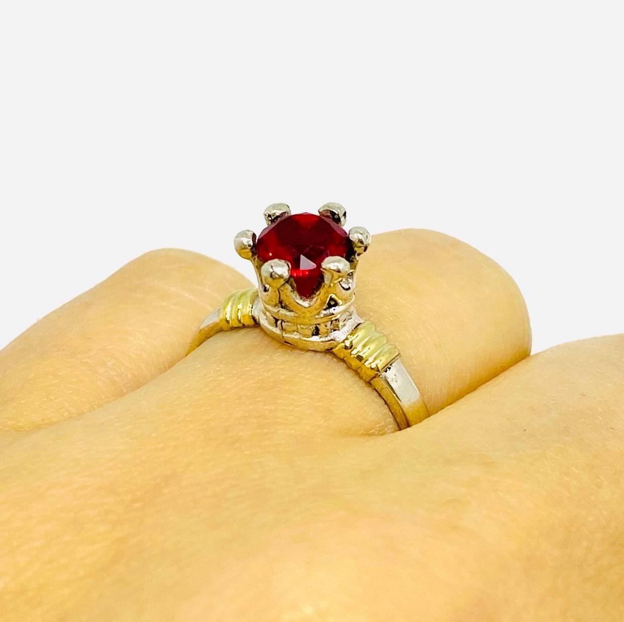 Anillo corona de Elsa con cubic rubi Plata y Oro