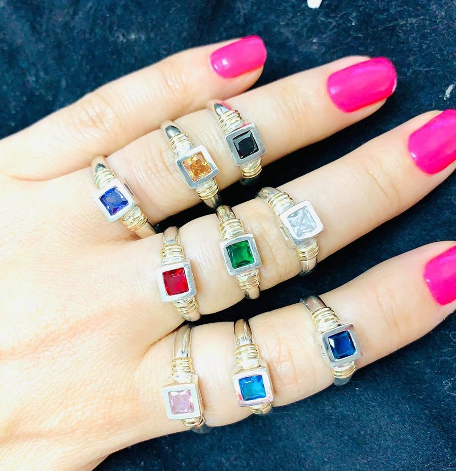 Anillos Cuadrado 7mm colores surtidos x 12 Plata y Oro