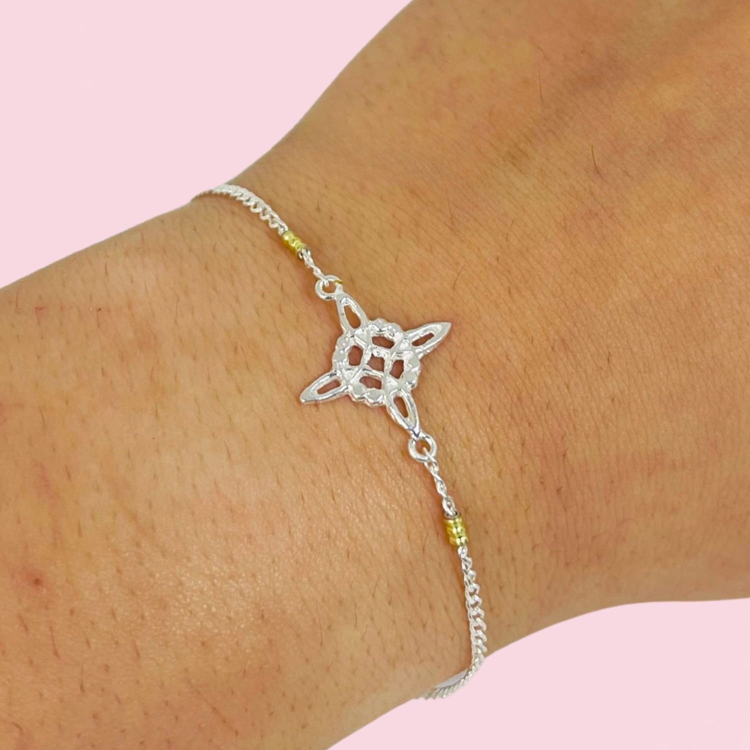 Artículo: PS 113-1Pulsera Groumet Nudo de bruja Plata 925 con aplique de oro 18k