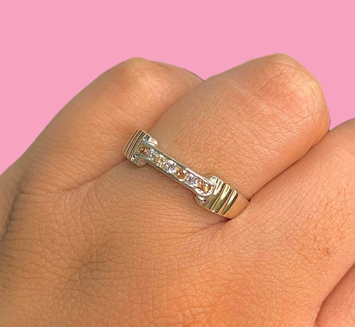 Anillo Medio Sin Fin con cubic blanco-ambar Plata y Oro