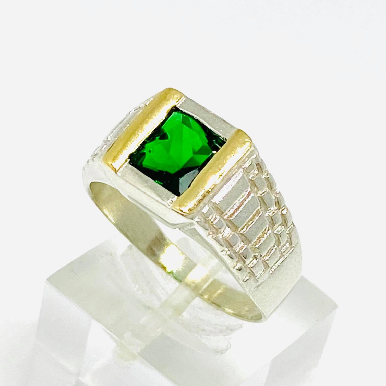 Anillo rollex con cubic cuadrado esmeralda Plata y Oro