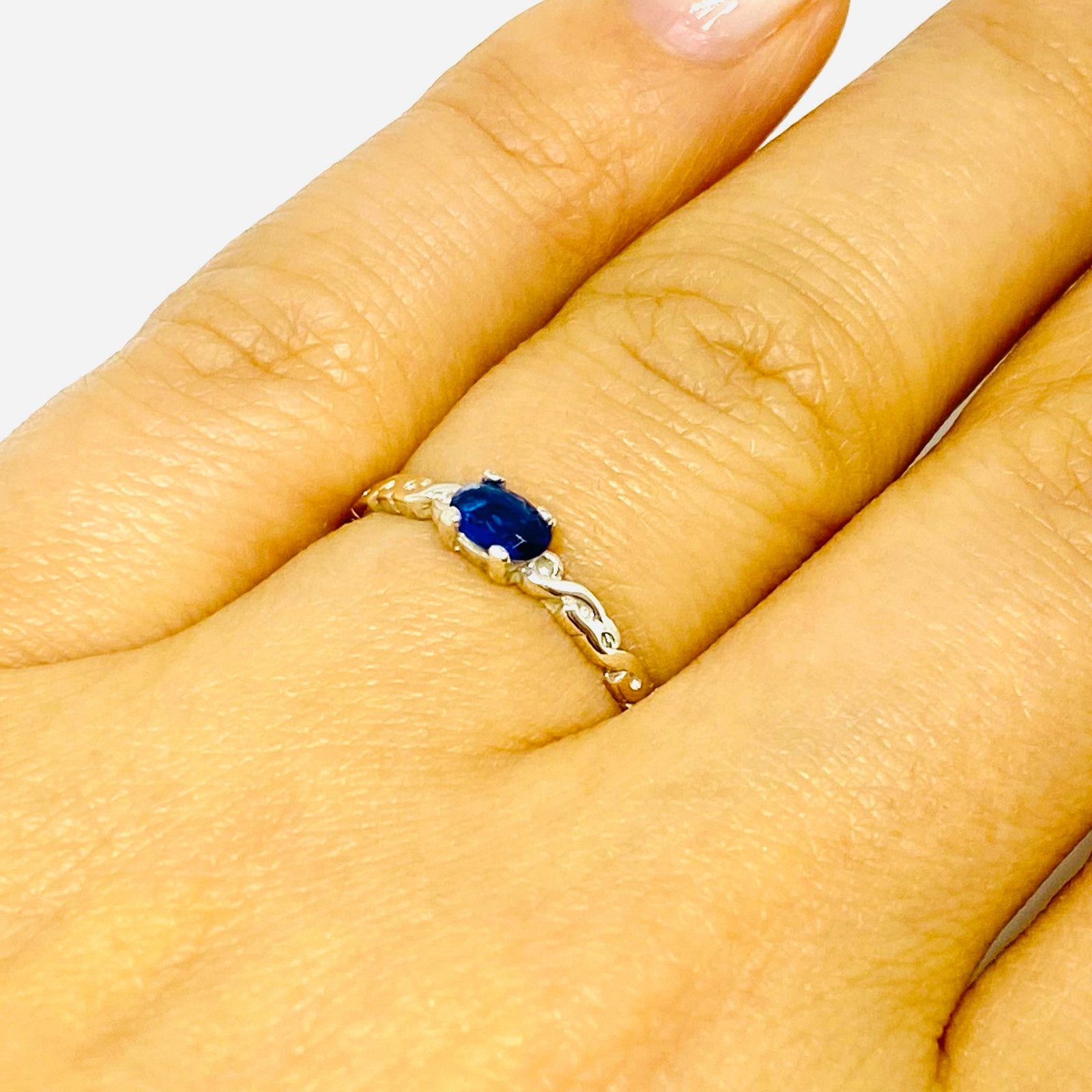Anillo Fino de Compromiso con cubic Ovalado Zafiro Plata 925