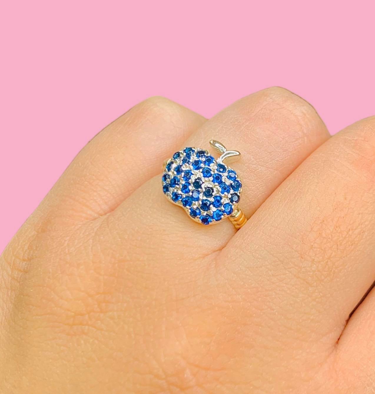 Anillo Apple con Piedras Zafiro Engarzadas de Plata y Oro