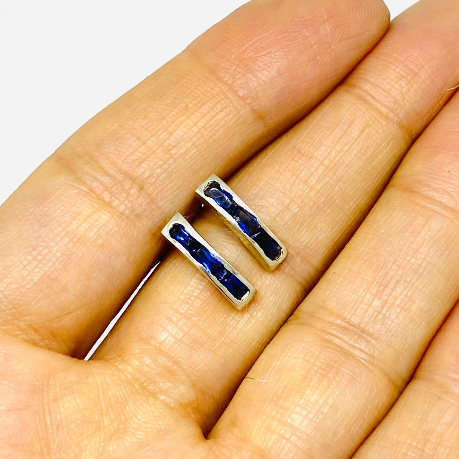 Aros Medio Sinfin Baguette Zafiro Plata 925