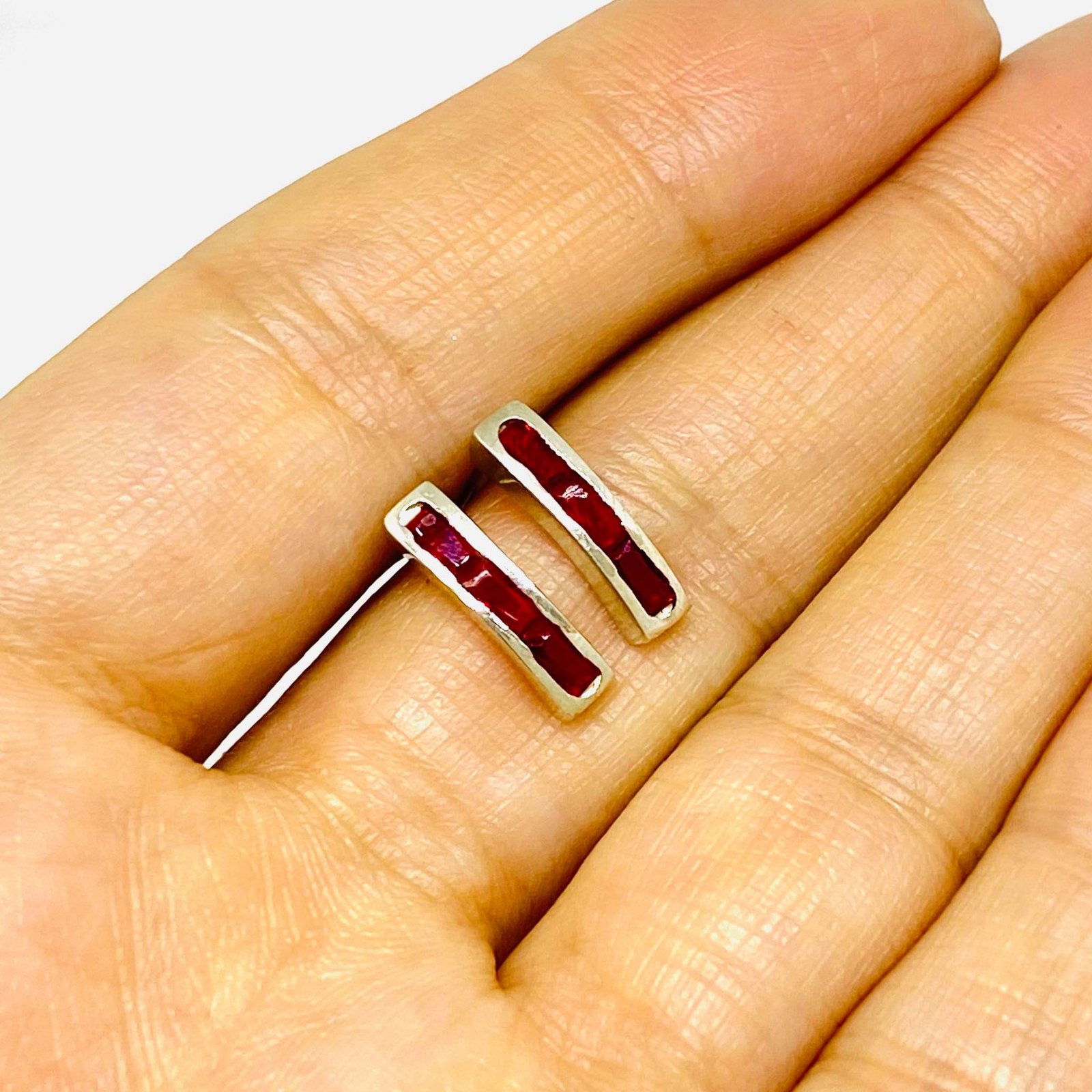 Aros Medio Sinfin Baguette Rubi Plata 925