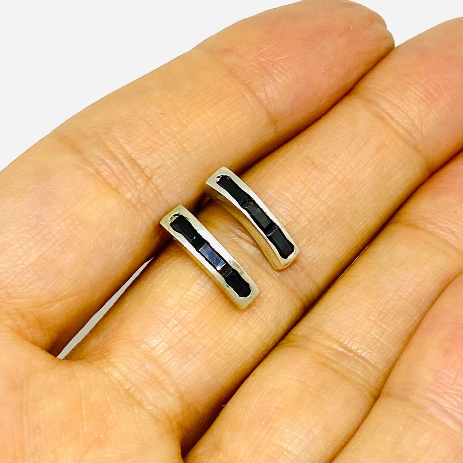 Aros Medio Sinfin Baguette Negro Plata 925