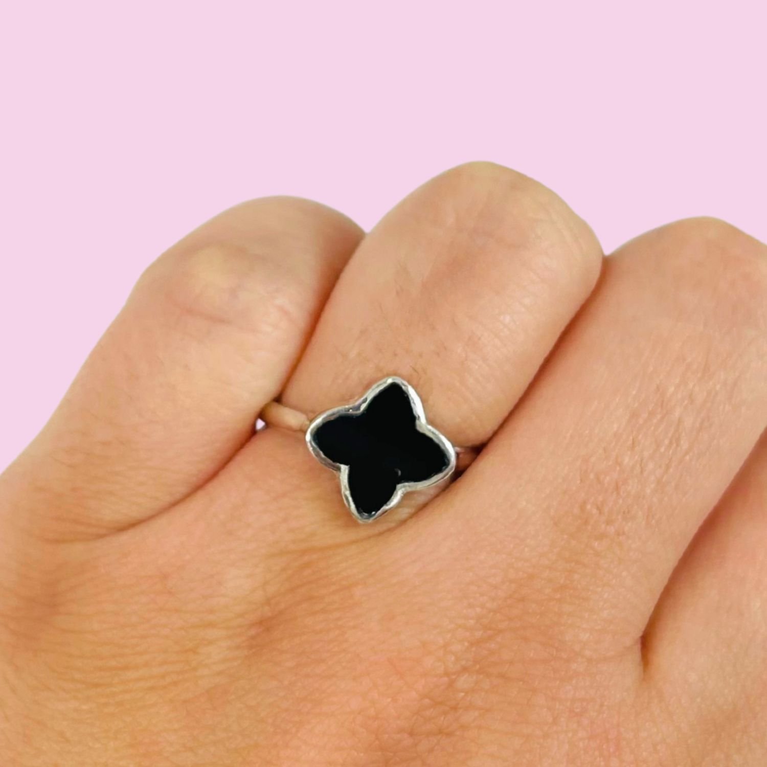 Anillo Cuatro Hojas Onix Plata 925