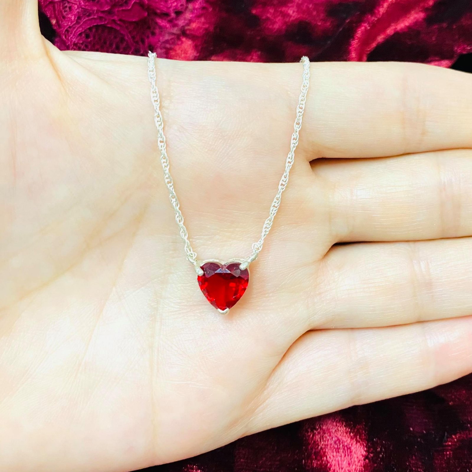 GARGANTILLA Corazon color Rubi Plata 925