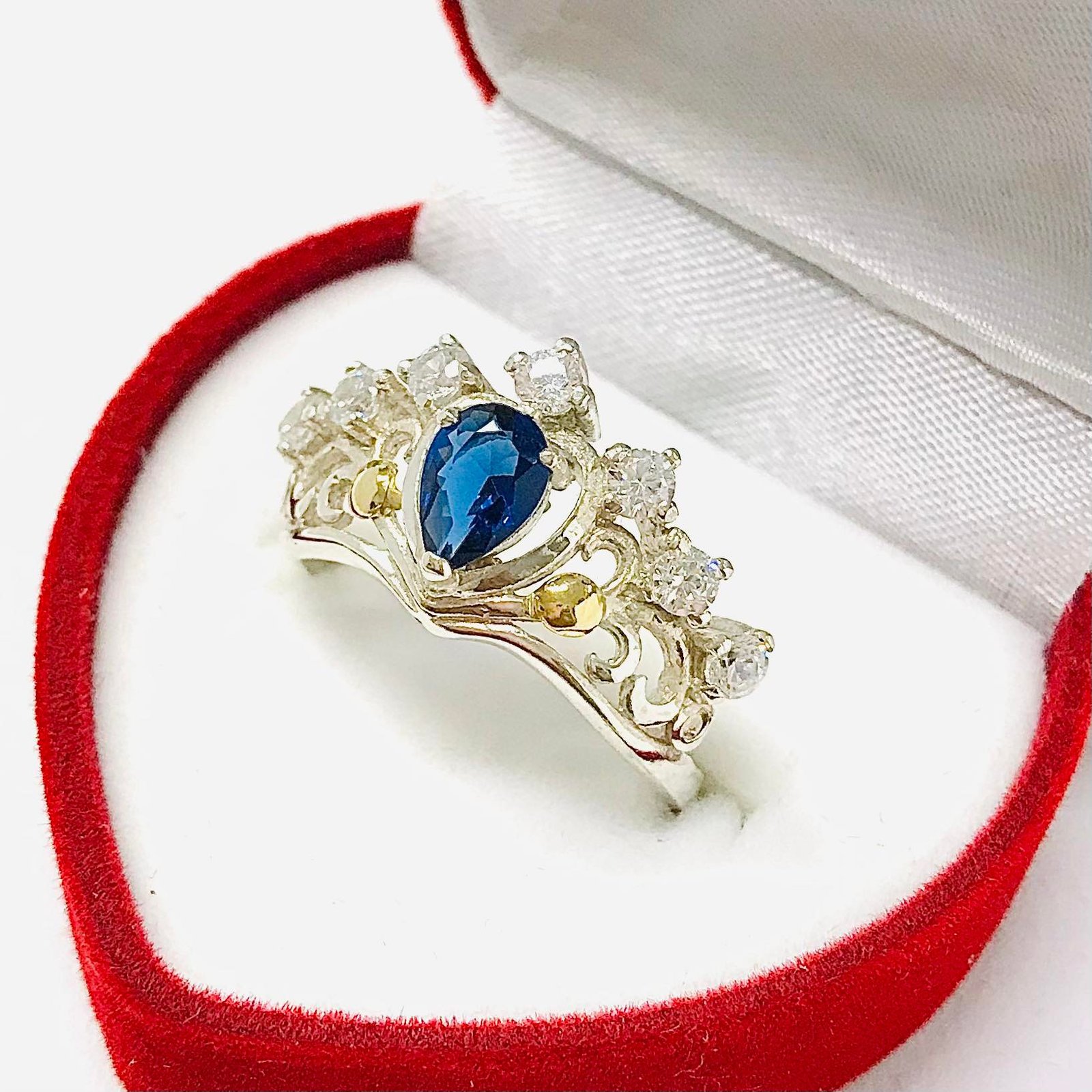 Anillo Reina Amelia zafiro de Plata y Oro