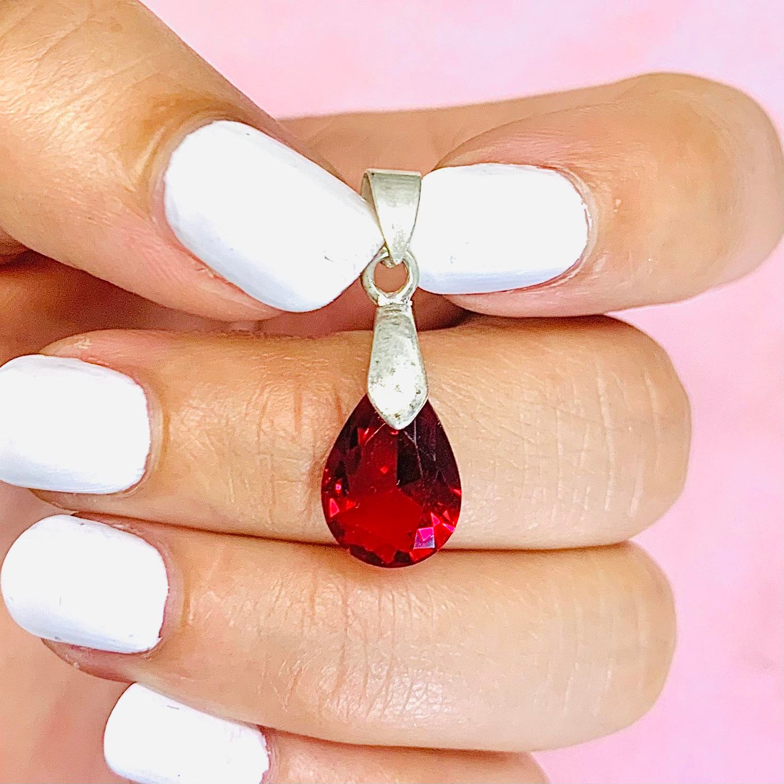 Dije con cubic rubi de gota 14x10mm grande de plata 925