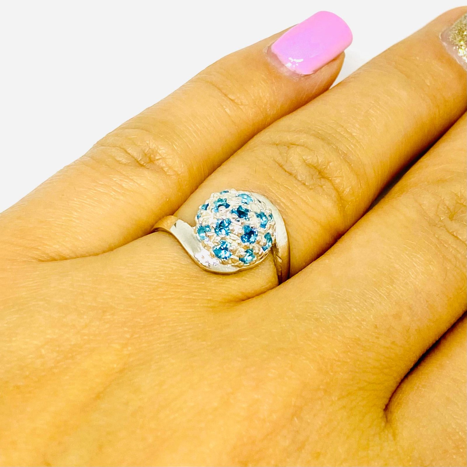 Anillo Frutillita con Onda cubicAguamarina de Plata 925