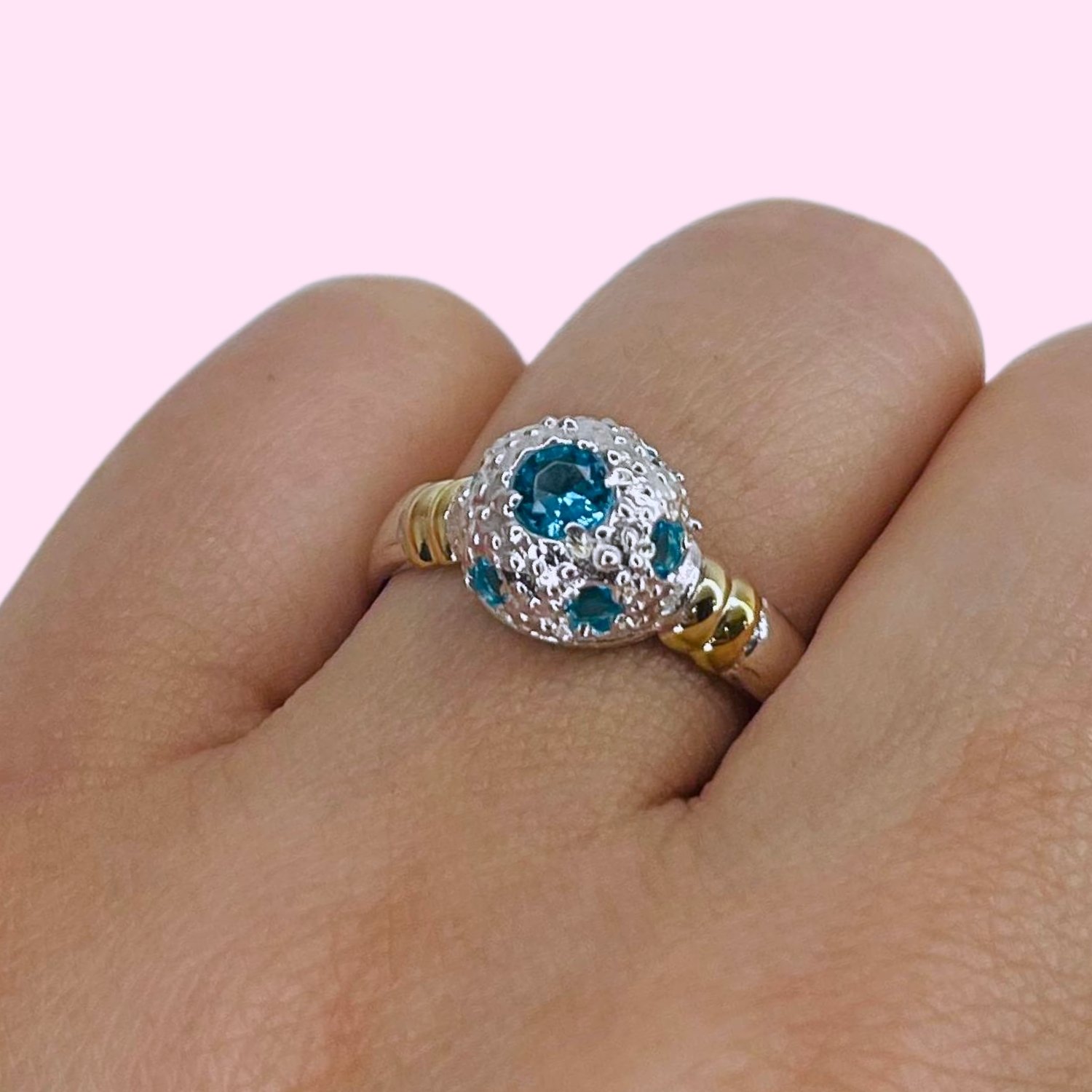 Anillo Erizo Grande Aguamarina de Plata y Oro