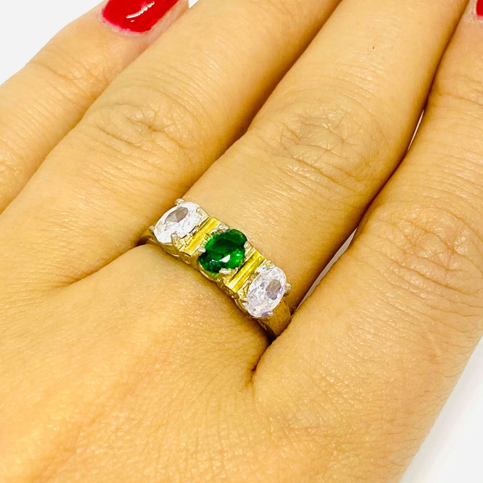 » Anillo Trio con cubic Ovalado combinado Plata y Oro