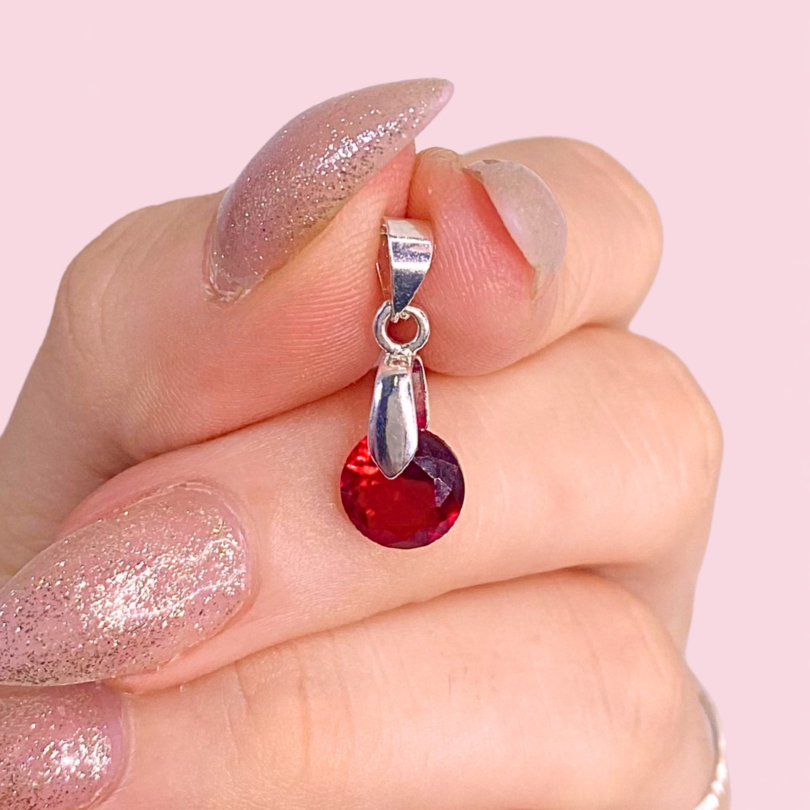 Dije redondo Rubi chico 8mm Laminado de plata 925