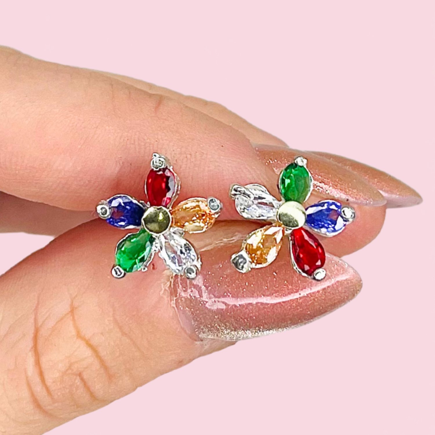 » Aros flor Margarita con cubic multicolor Plata y Oro