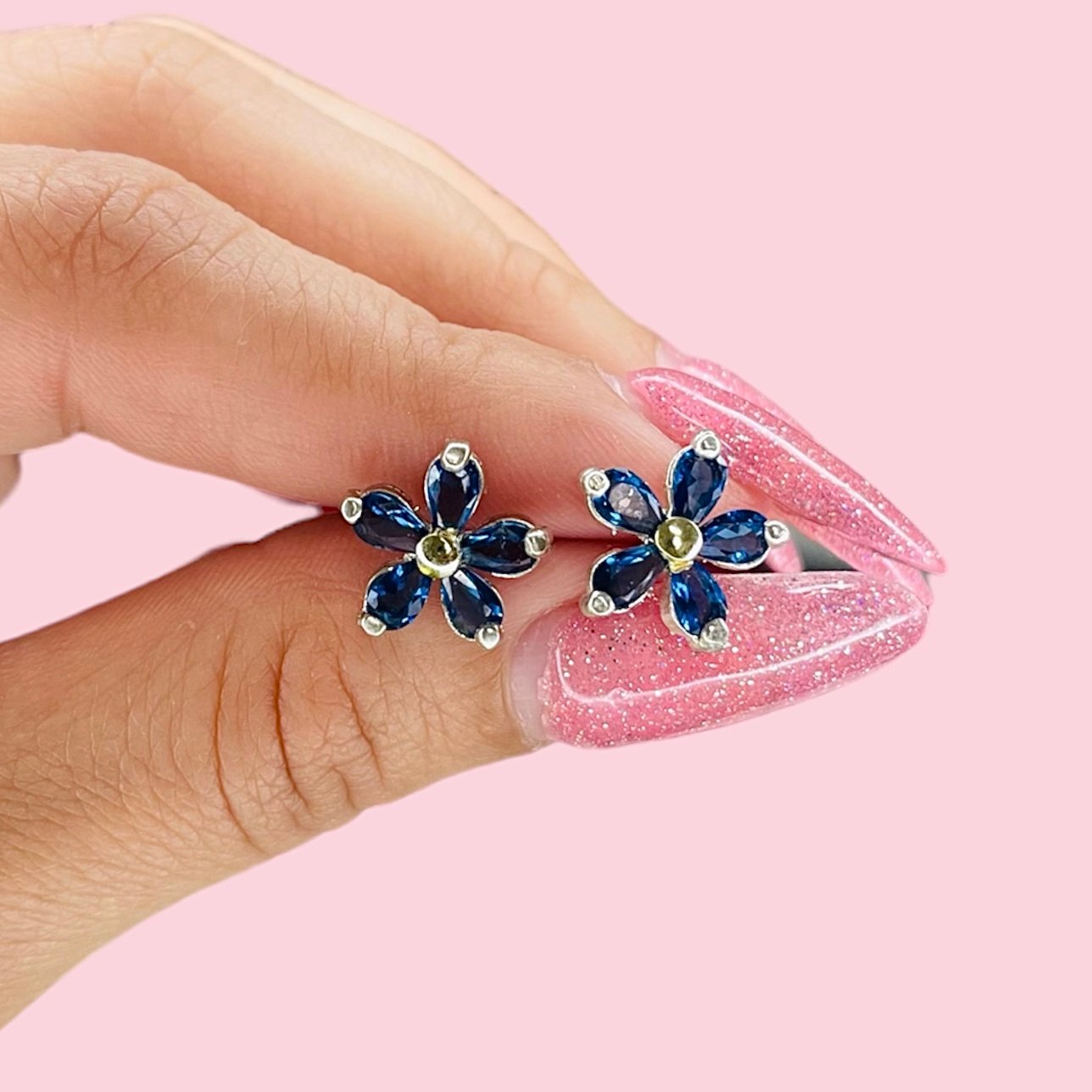 Aros flor Margarita con cubic Zafiro Plata y Oro