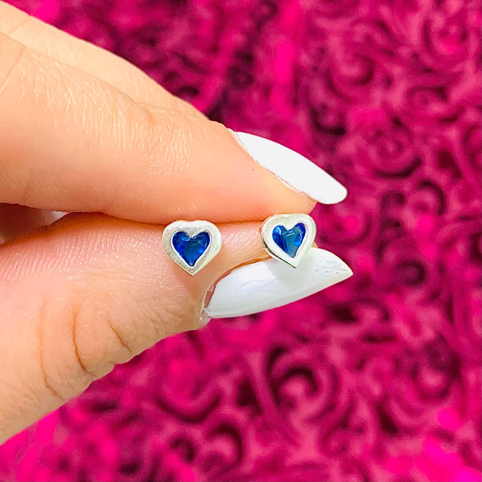 Aros corazoncito con piedra Zafiro de Plata 925
