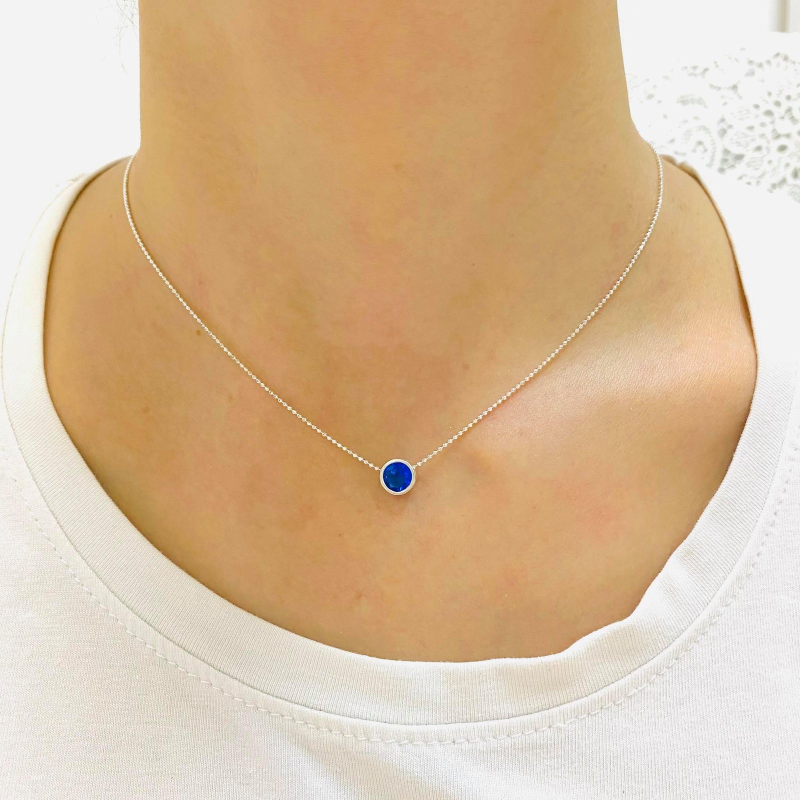 GARGANTILLA Bolitas con Susanita 7mm Zafiro Plata 925