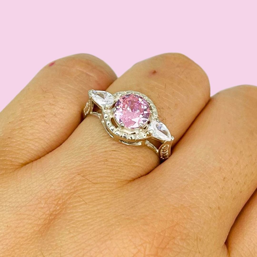 Anillo Emperatriz con cubic Rosa-Blanco Plata 925