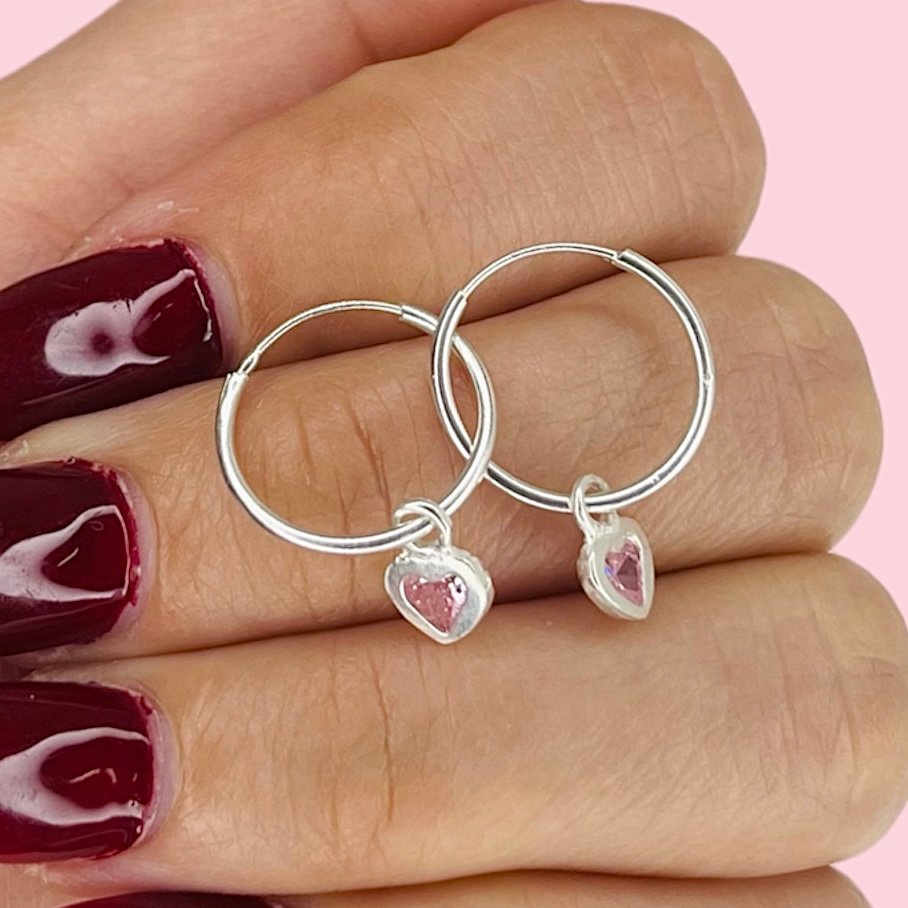 Aros Cubano 15mm con cubic Corazon rosa de plata 925
