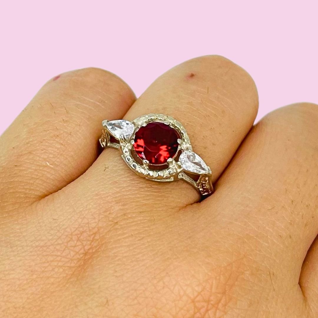 Anillo Emperatriz con cubic Rubi-Blanco Plata 925