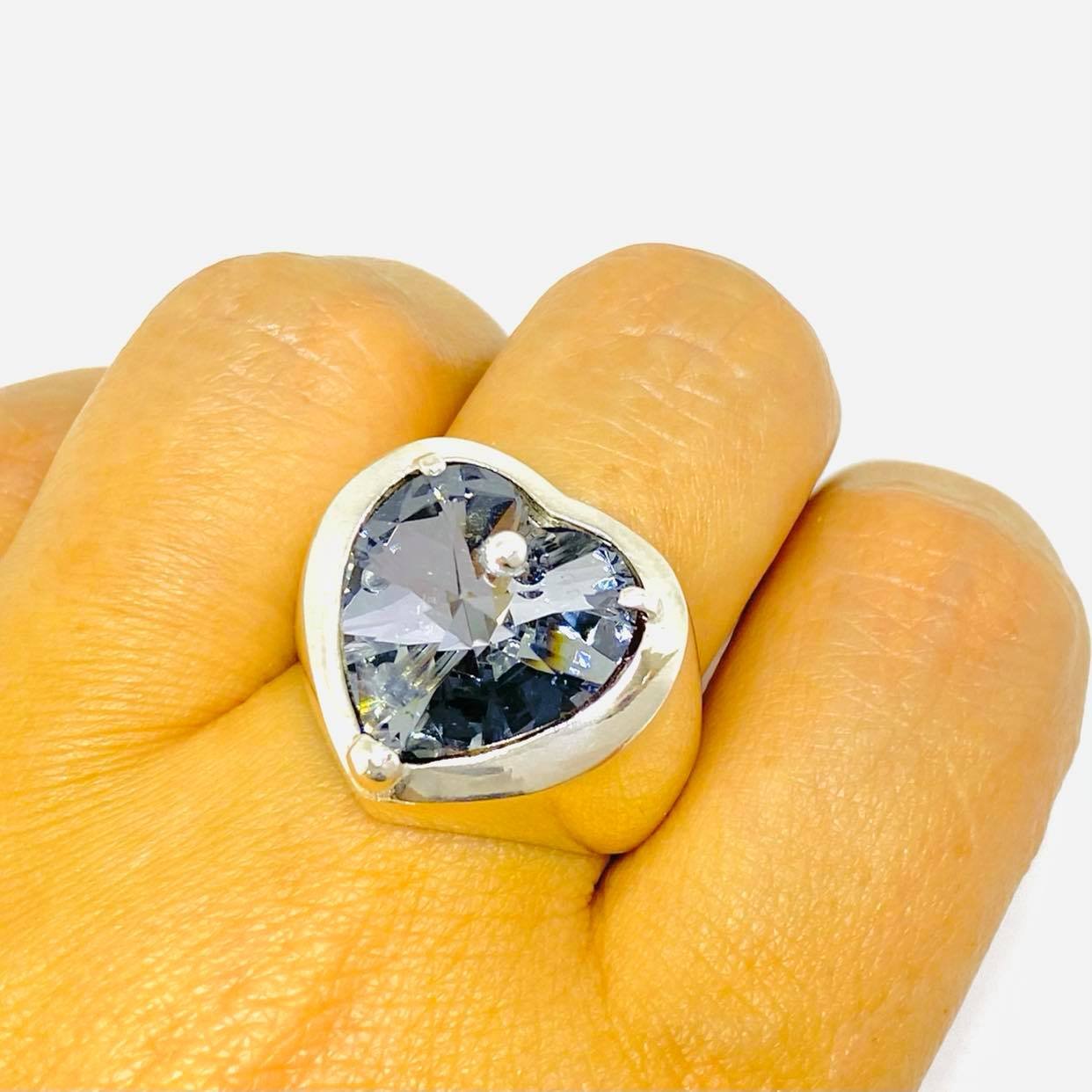 Anillo Corazon Con Swarovski Silver Night Plata 925