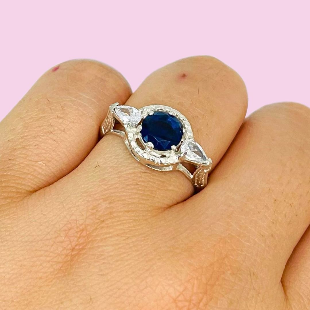 Anillo Emperatriz con cubic Zafiro-Blanco Plata 925