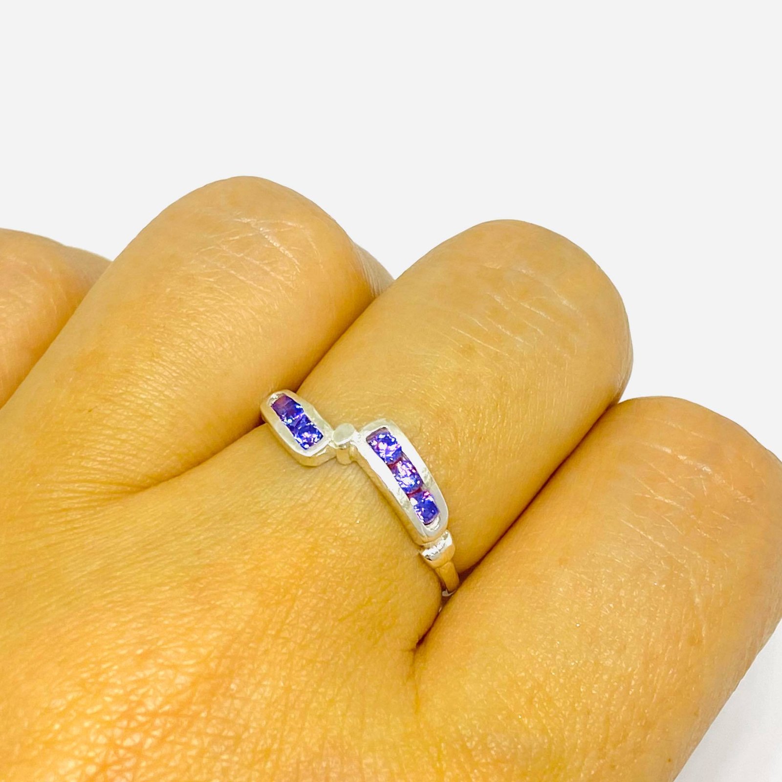 Anillo Rayo con Piedras amatistas de Plata 925