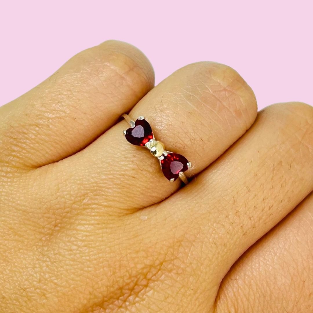 Anillo moño con Cubic Rojo Plata 925 y Oro 18k