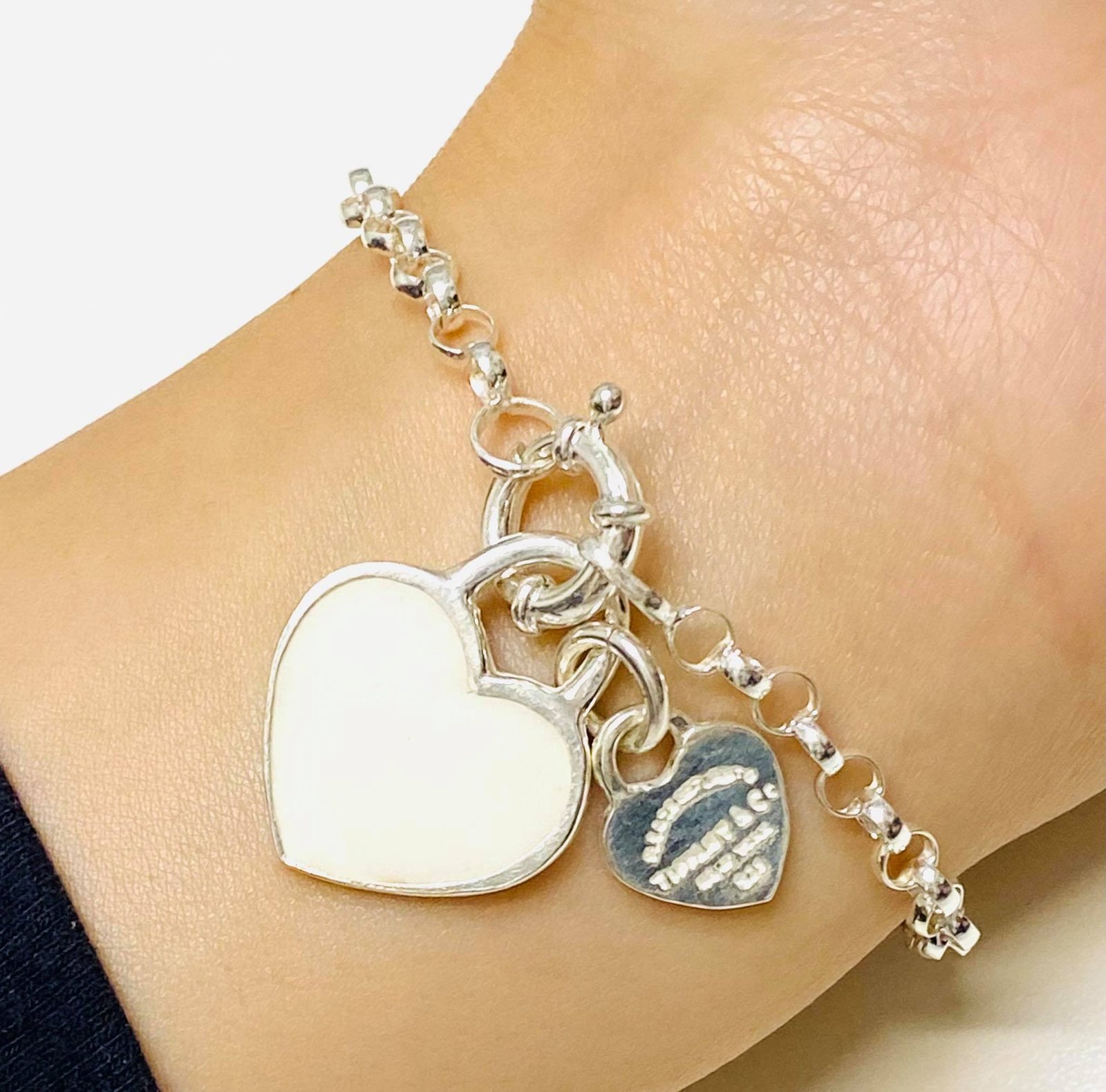Pulsera rolo con Dije Tifani Corazon Esmaltado Plata 925