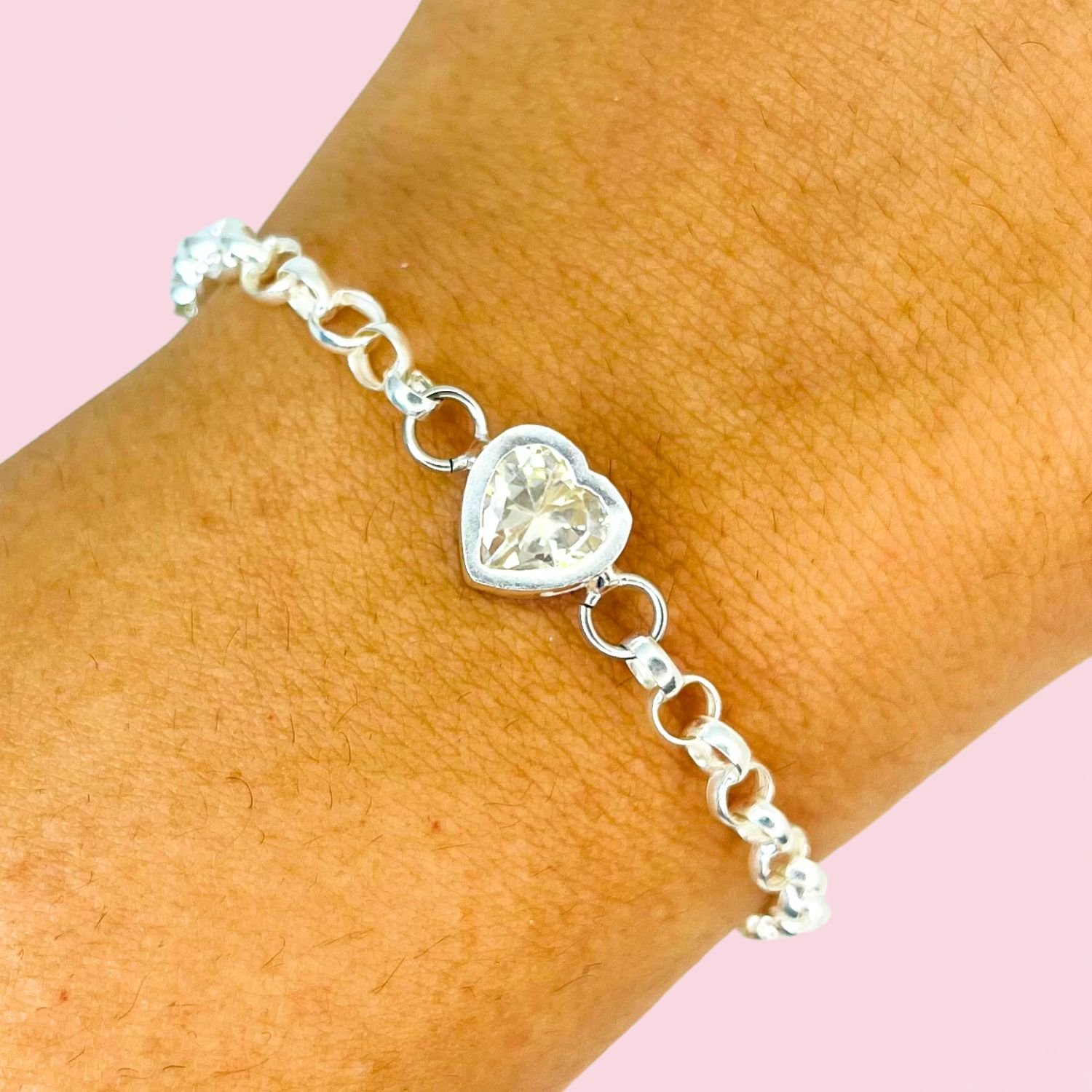 Pulsera rolo con Susanita Corazon cubic blanco plata 925