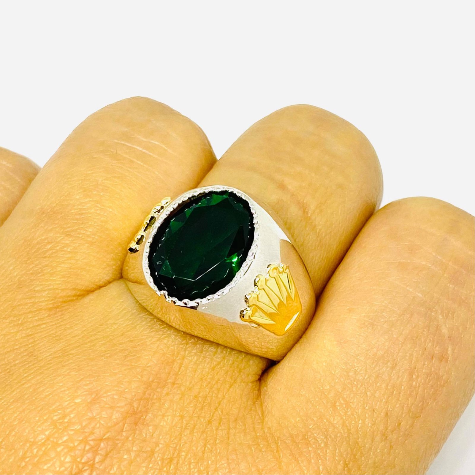 ANILLO SELLO CON CUBIC Esmeralda Plata y Oro