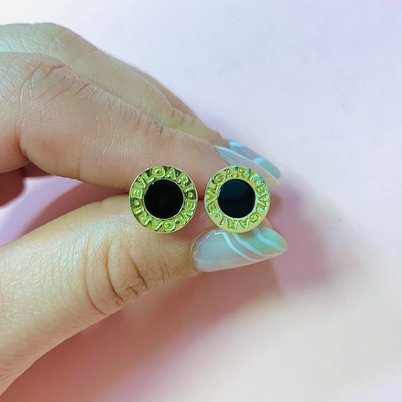 Aritos tipo BVL Mediano 9mm con Onix Plat y Oro