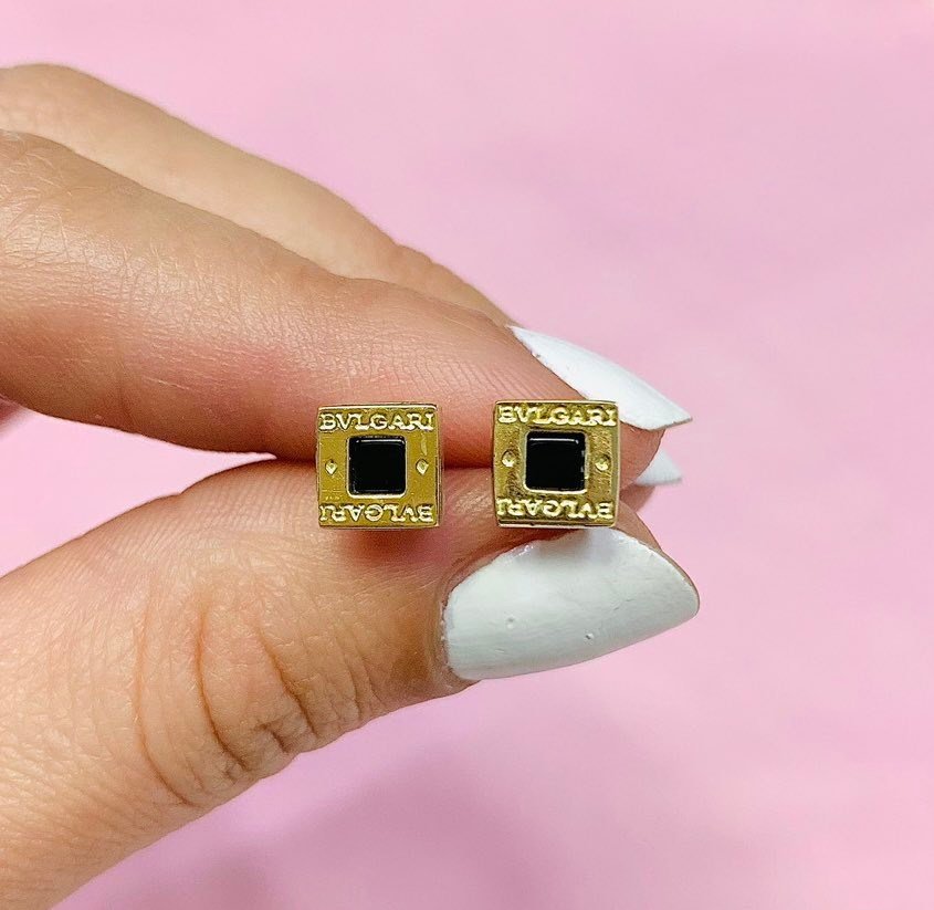 Aritos tipo BVL cuadrado 7mm con Onix Plata y Oro