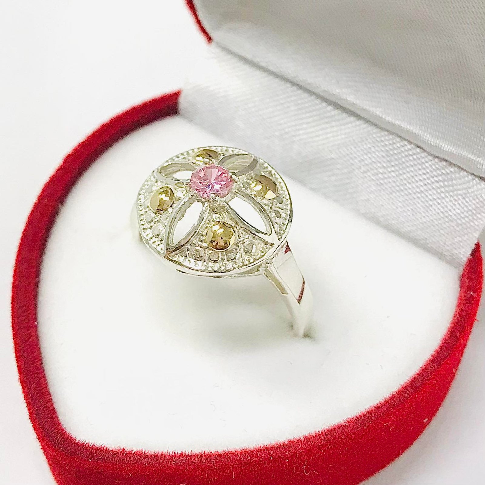 Anillo imperial con cubic rosa de Plata y Oro