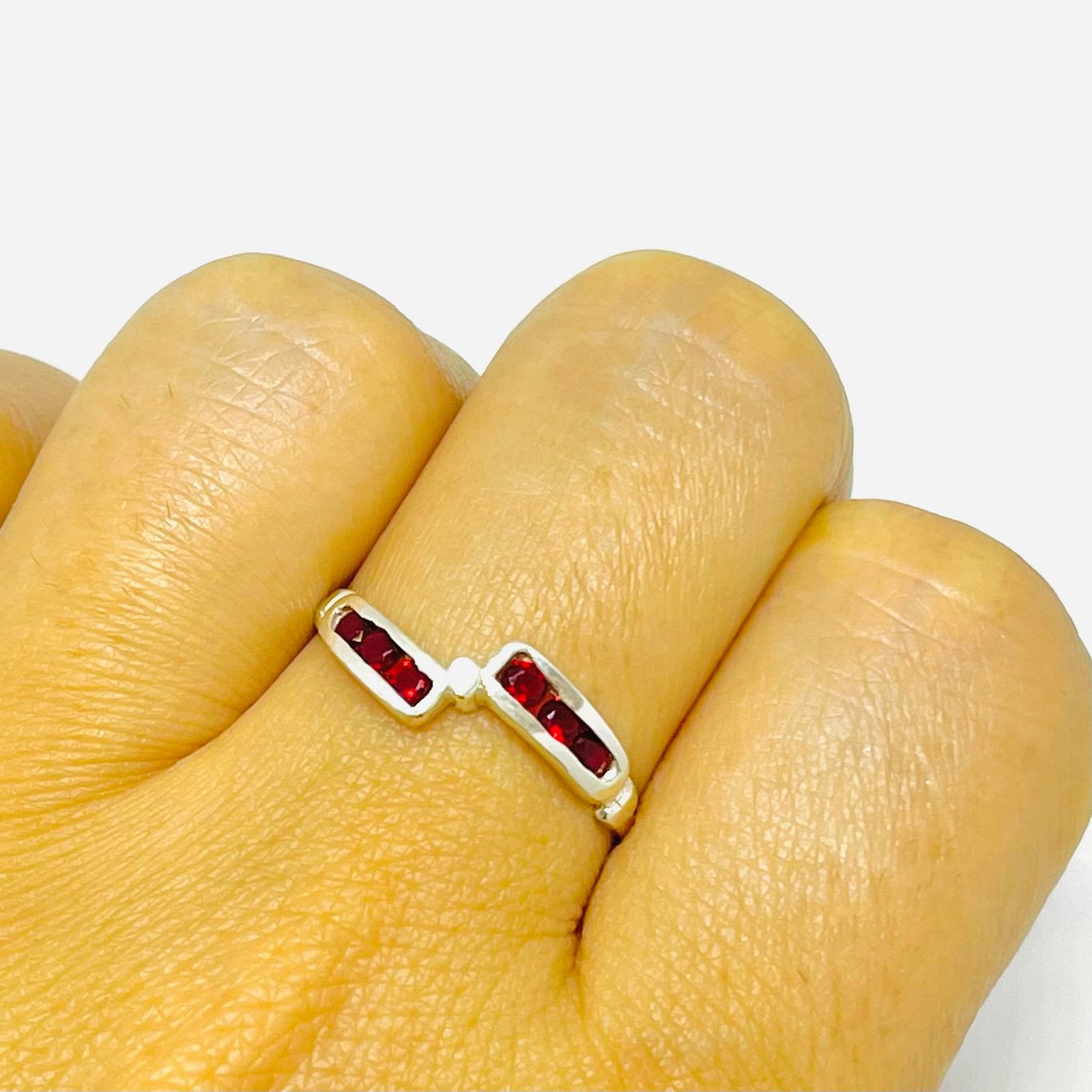 Anillo Rayo con Piedras Rojas de Plata 925