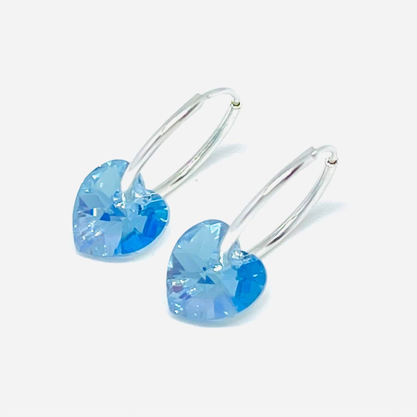 Aros Cubano con Swarowski Corazon Agua plata 925