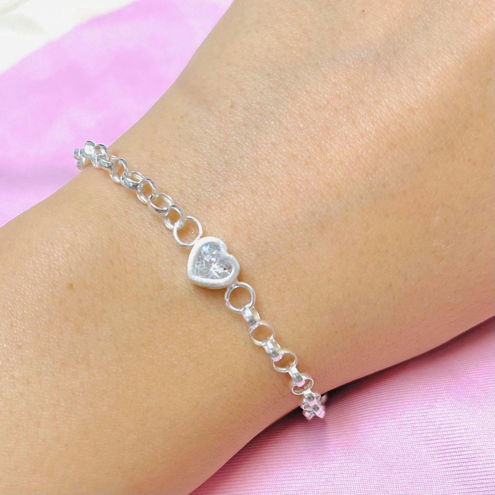 Pulsera con Corazon chico Blanco plata 925