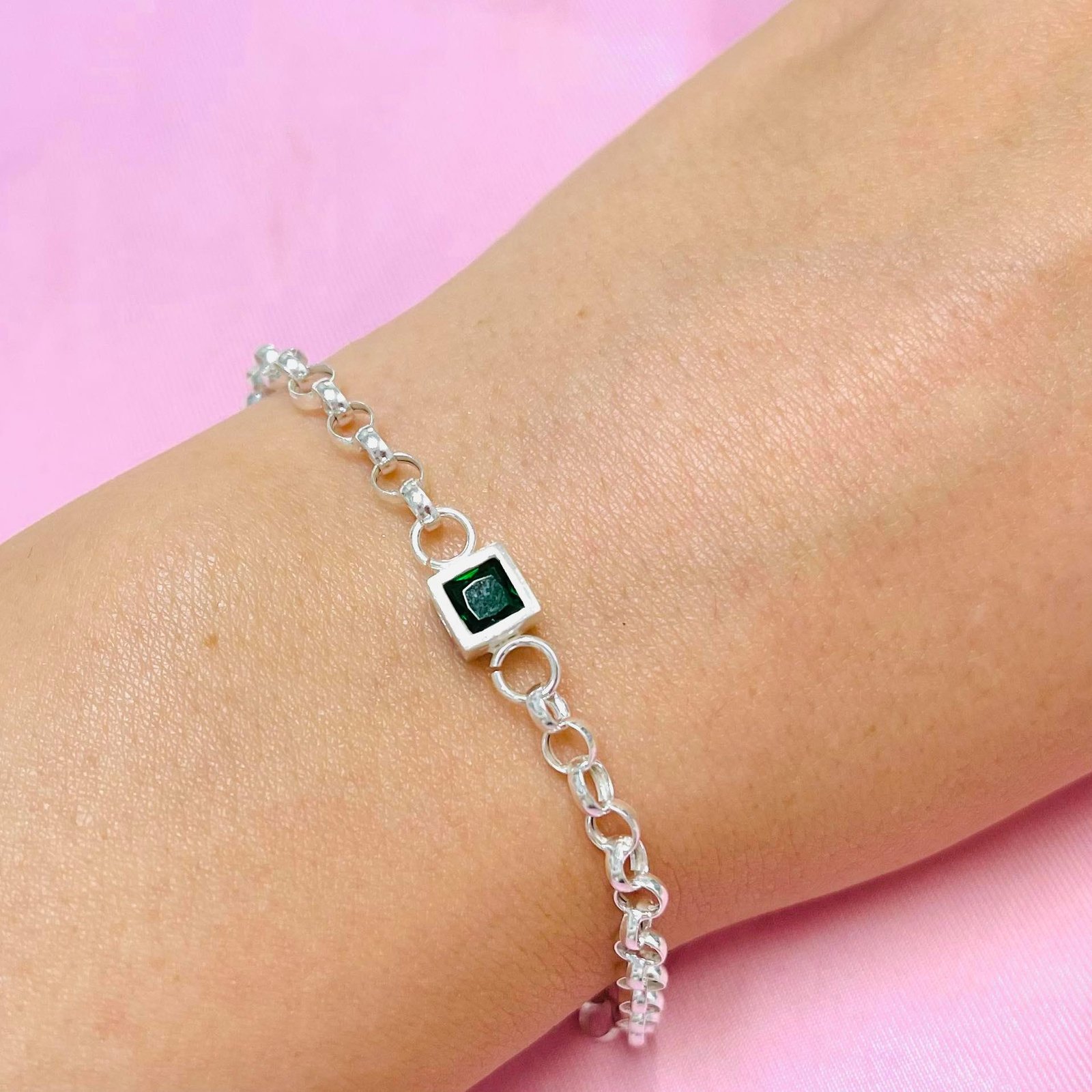 Pulsera con dije cuadrado chico Esmeralda plata 925