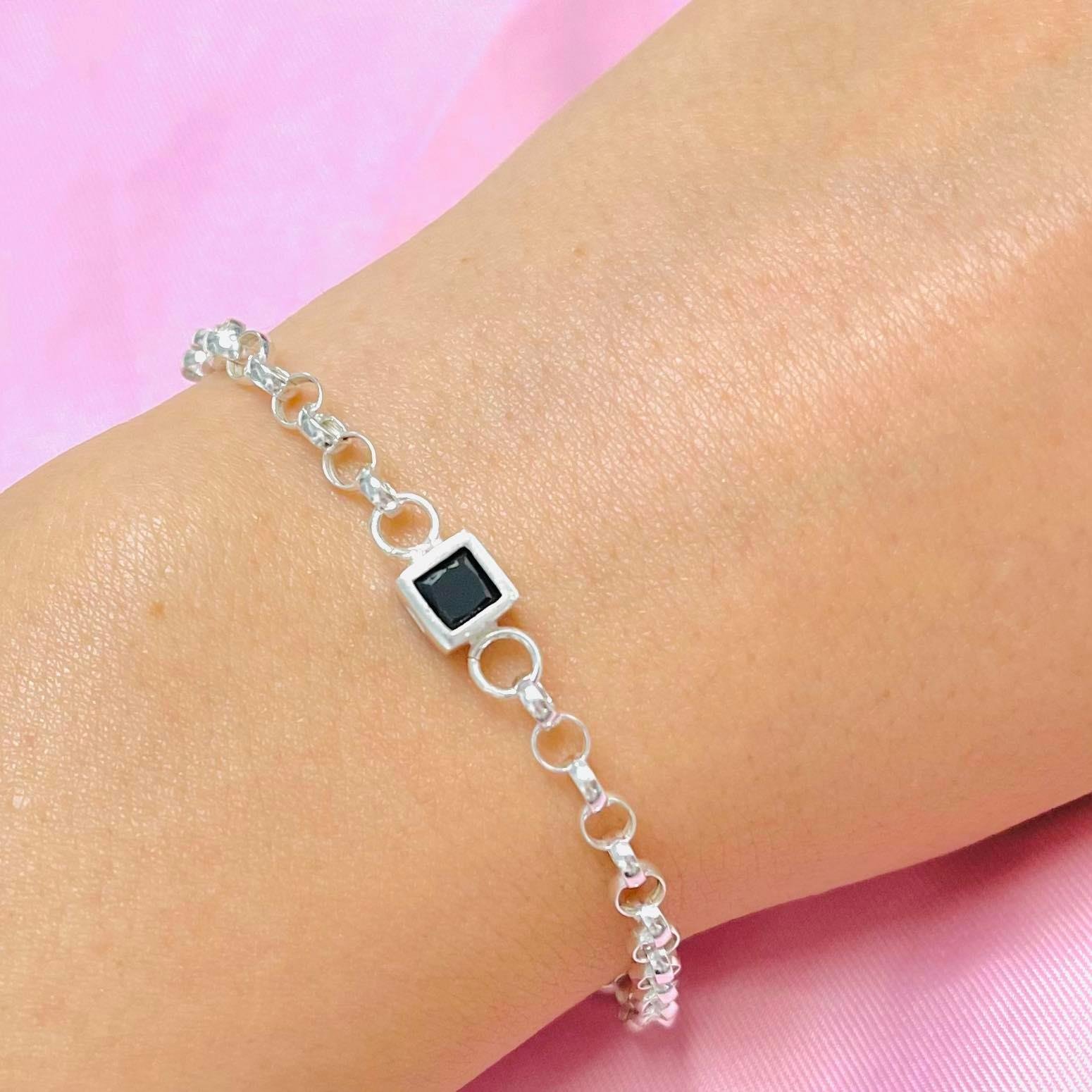 Pulsera con dije cuadrado chico negro plata 925
