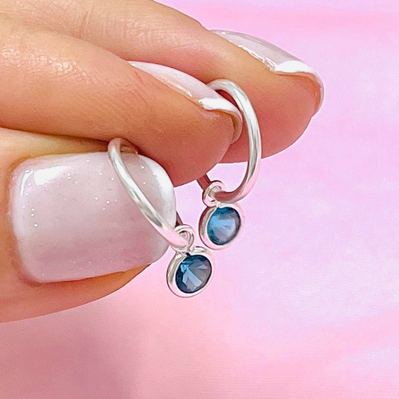 Aros Cubano 13mm con cubic Aguamarina de plata 925