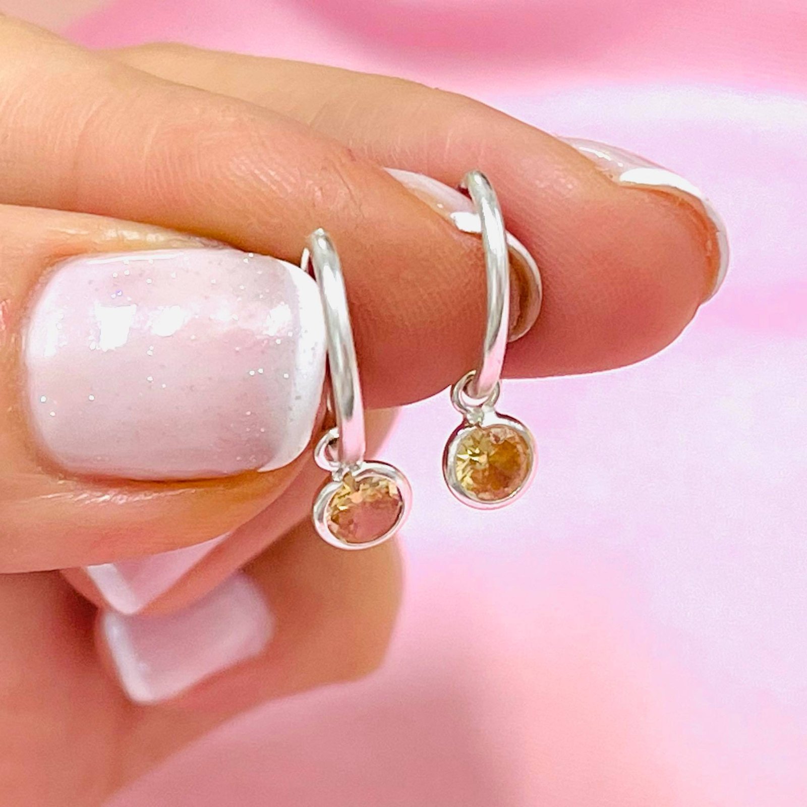 Aros Cubano 13mm con cubic Ambar de plata 925