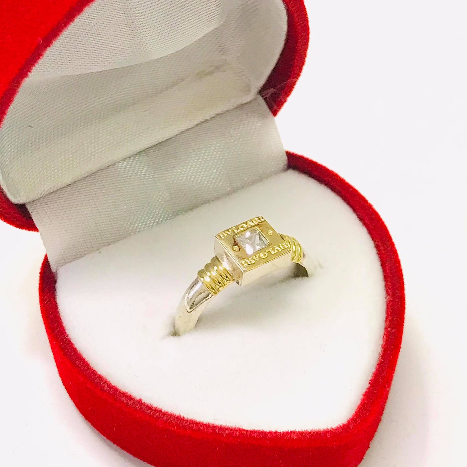 ANILLO BVLG cuadrado Blanco de Plata y oro