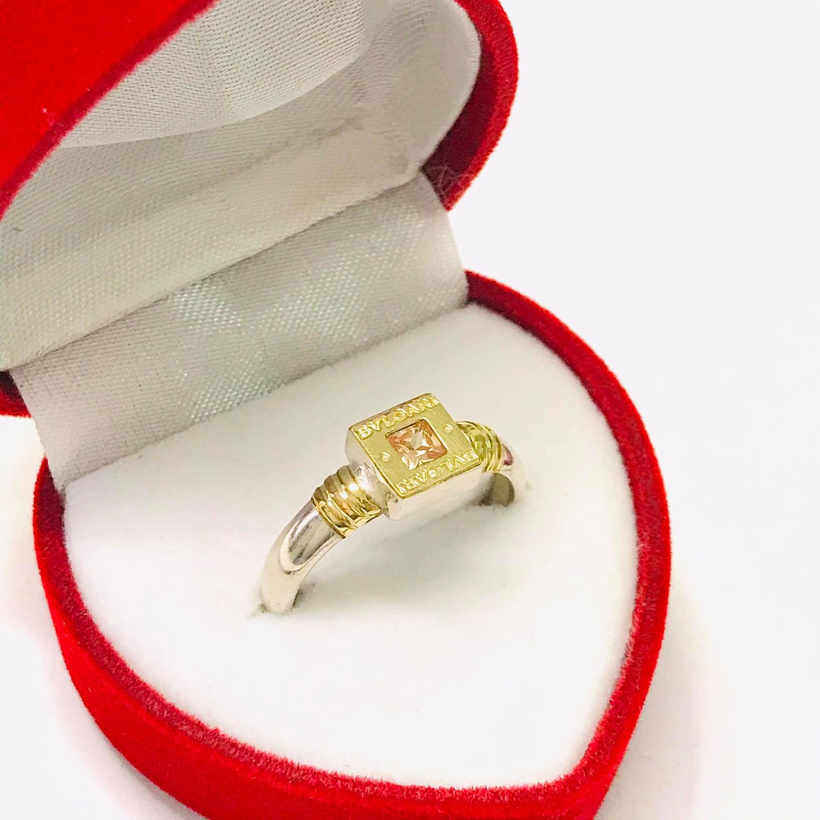ANILLO BVLG cuadrado ambar de Plata y oro