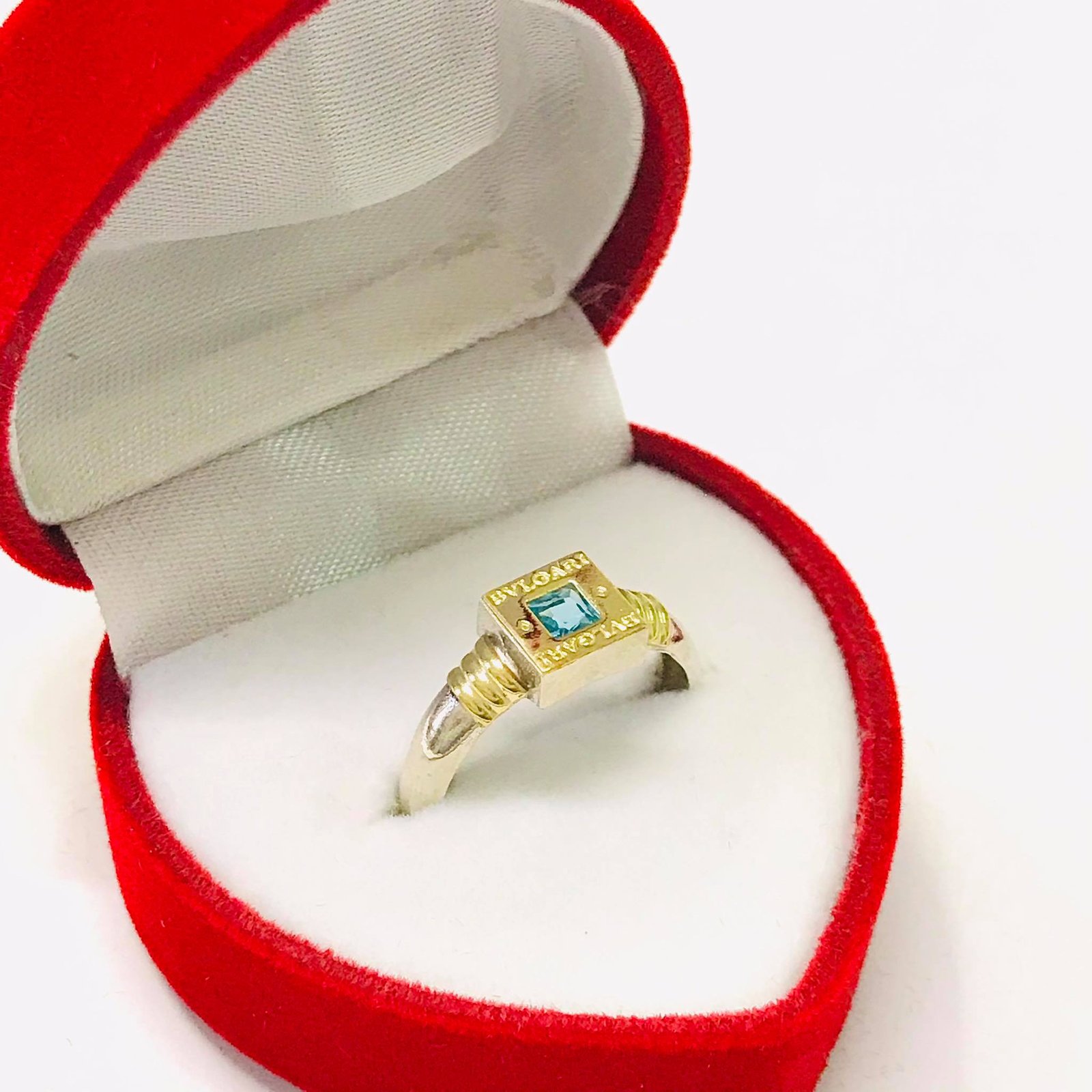 ANILLO BVLG cuadrado aguamarina de Plata y oro